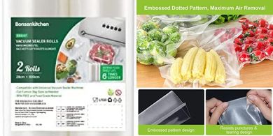 9. Bolsas vacío gofradas Bonsenkitchen: 2 rollos (28x600cm), BPA free.