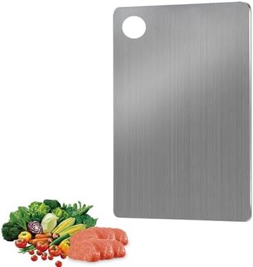 Presentamos la Tabla de Cortar Titanio, una solución innovadora para tu cocina. Fabricada en acero inoxidable 316 de doble cara, esta tabla ofrece excepcional durabilidad y resistencia a los cuchillos afilados. A diferencia de las tablas de madera o plástico, no absorbe olores ni líquidos, garantizando una higiene superior y fácil limpieza con solo agua. Su diseño ligero y robusto permite un uso versátil para cortar carne, verduras, pan, y amasar, sin riesgo de contaminación cruzada. Disfrute de una tabla de cortar de alta calidad, libre de BPA, que añade elegancia y eficiencia a su cocina.
